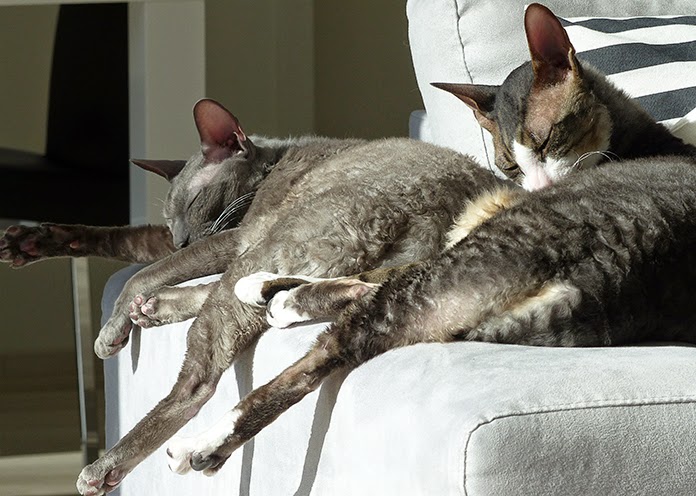 Kun aloin haaveilemaan lasiterassista, niin mielessäni oli ihanan kutsuva ja vehreä keidas. Käytäntö on kuitenkin osoittanut, että meidän akvaariomme voi olla ihana ja kutsuva, mutta ei vehreä! Toistaiseksi en ole saanut nimittäin yhtäkään kasvia pysymään siellä elossa, sillä terassi kuumenee päivällä helposti yli 60-asteiseksi. Toki terassin saa pysymään viileämpänä, jos liukuovia pitää koko ajan auki, mutta en raaski, sillä kissat viihtyvät siellä ja nauttivat lämmöstä niin kovin. (Ja karkaavat heti, jos avaan liukuovet.) Pitäähän nyt joka kissalla olla oma lasiterassi!